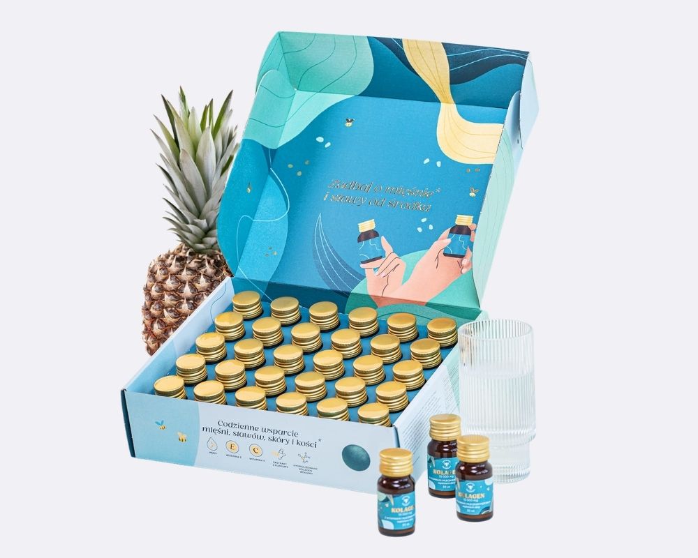 | Opis | Kolagen do picia w shotach na stawy, 1 shot dziennie, na 30 dni, smak owocowy |